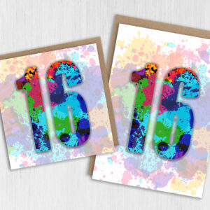 Age birthday card: Paint splats – 16th, 18th, 21st, 30th, 40th, 50th, any age