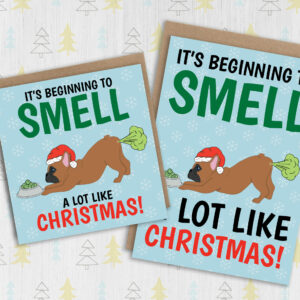 Funny Frenchie Christmas card: It’s beginning to smell a lot like Christmas