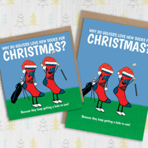 Funny golf Christmas card: Why do golfers love new socks for Christmas?