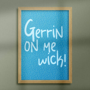 Brummie phrase print: Gerrin on me wick!