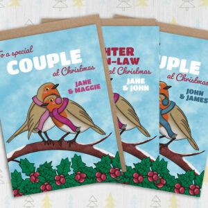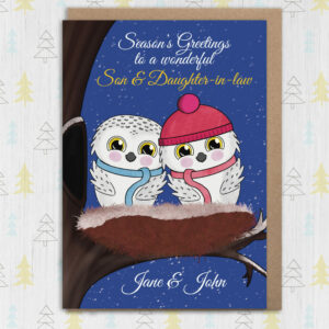 Personalised owls Christmas, holidays card for couple: Season’s Greetings to a wonderful couple