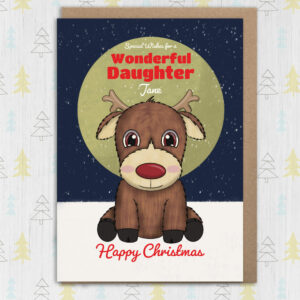 Personalised cute reindeer Christmas, holidays card: Happy Christmas