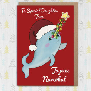 Personalised whale Christmas, holidays card: Joyeux Narwhal