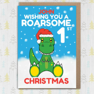 Personalised dinosaur Christmas, holidays card: Wishing you a roarsome Christmas