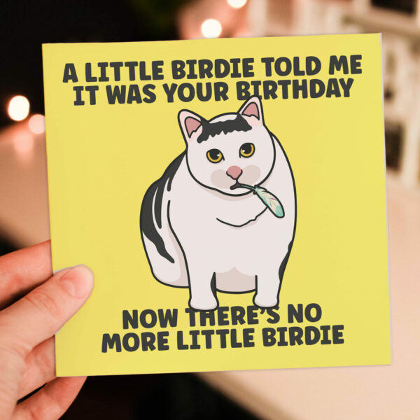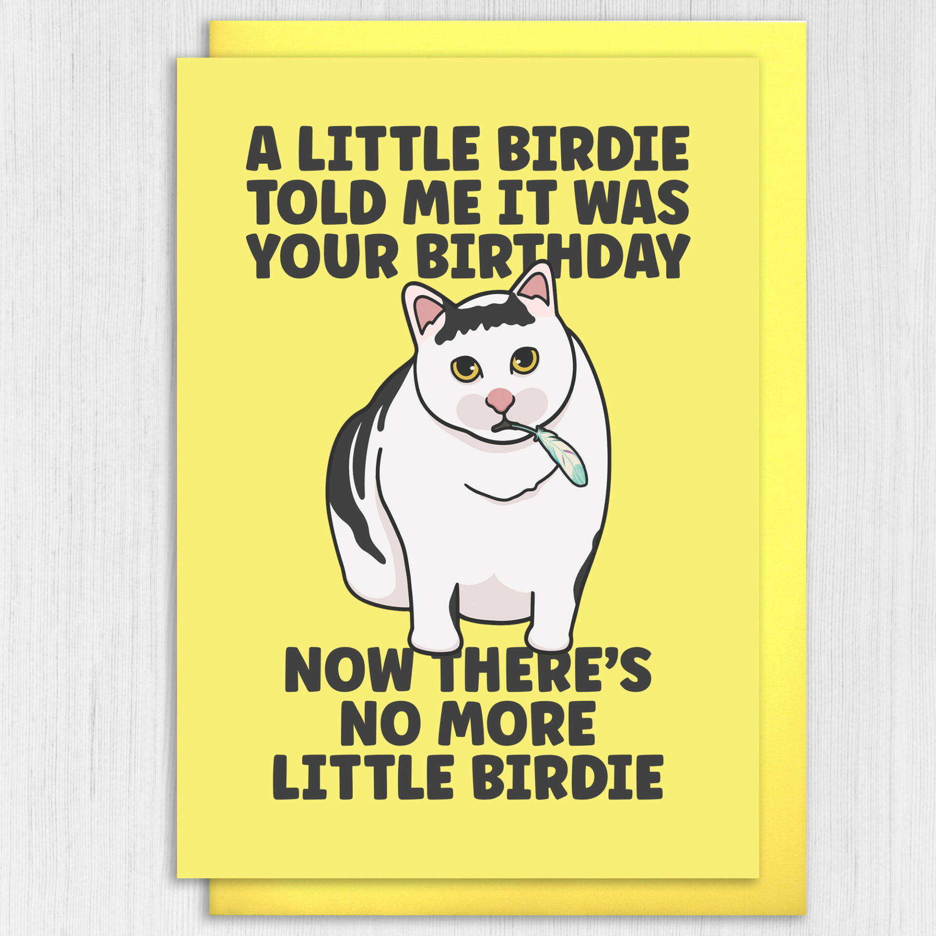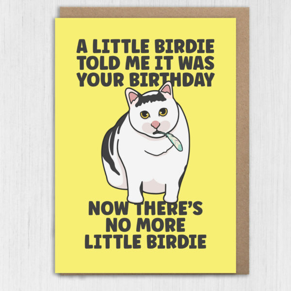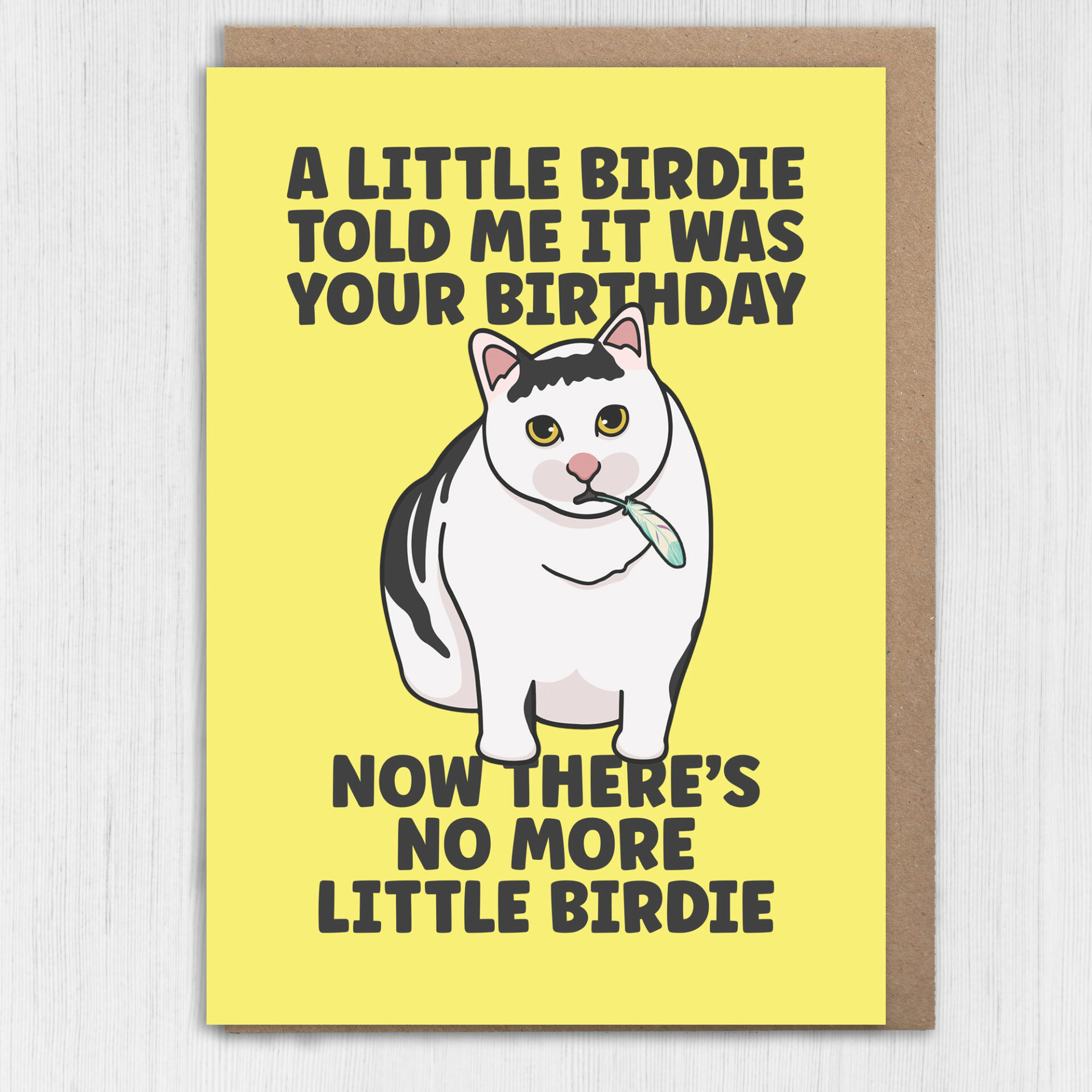 A little birdie told me it was your birthday, now there’s no more little birdie funny pet cat, kitten card (Size A6/A5/A4/Square 6×6″)