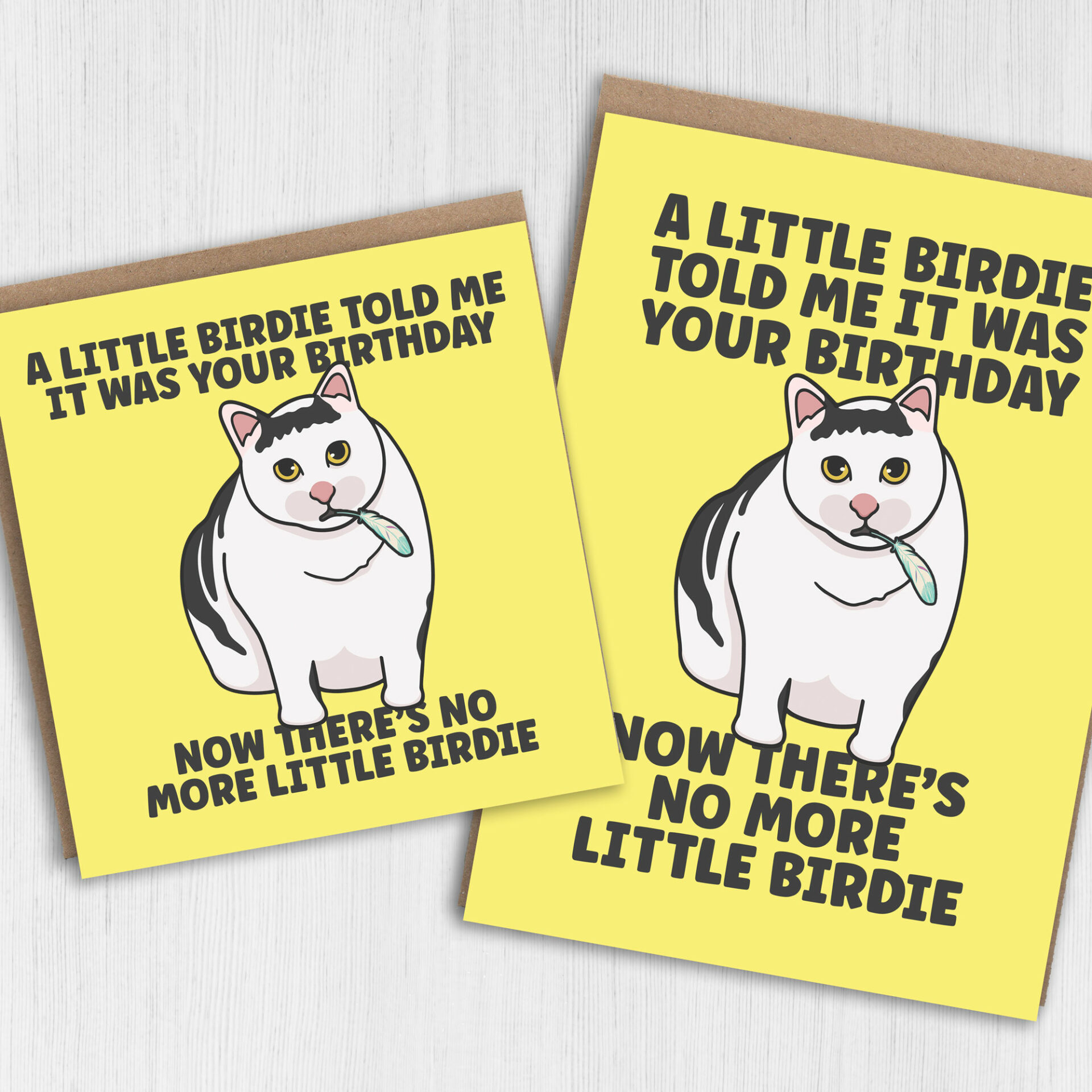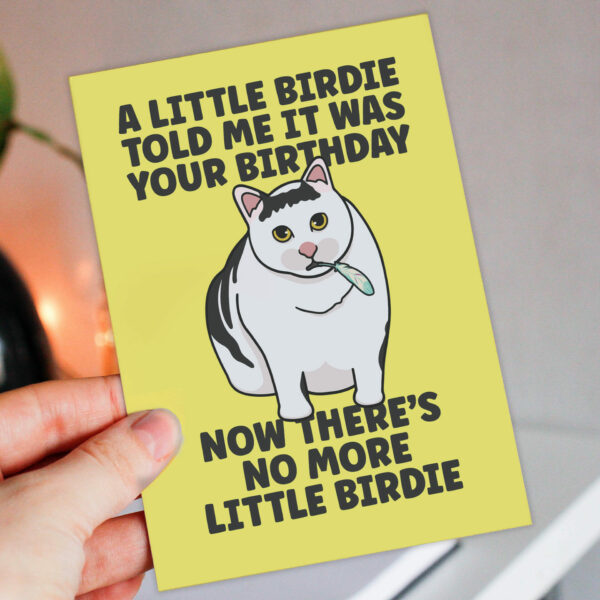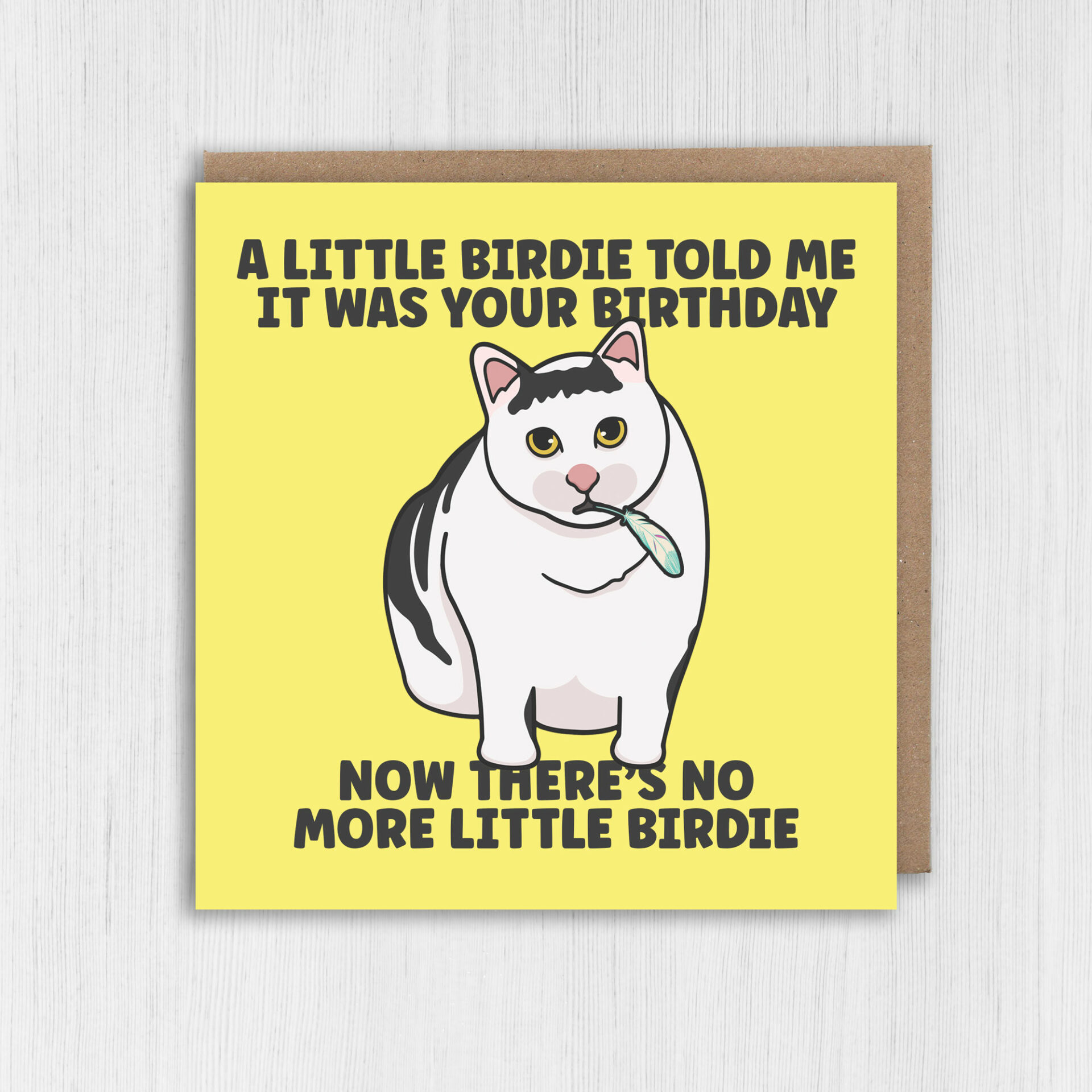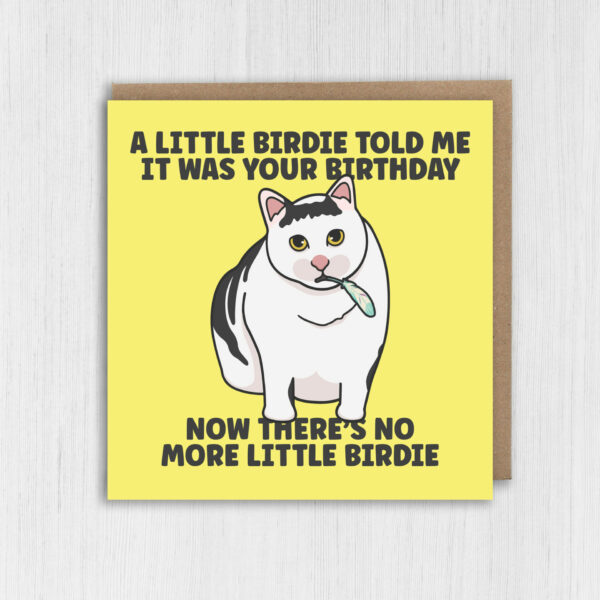 A little birdie told me it was your birthday, now there’s no more little birdie funny pet cat, kitten card (Size A6/A5/A4/Square 6×6″)