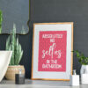 Absolutely no selfies in the bathroom pink typography print, wall art, wall decor for bathroom, toilet, WC (Size: A5/A4/A3)