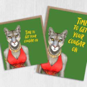 Time to rock your inner cougar funny animal in clothes birthday card for female, lady, woman, wife (Animalyser) (Size A6/A5/A4/Square 6×6″)