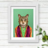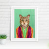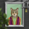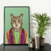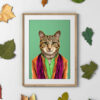 Cat in clothes, wearing clothes animal, cat print, wall art, wall decor, Animalyser for cat and animal lovers (Size: A5/A4/A3)