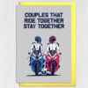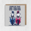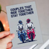 Bikers anniversary, Valentine’s Day card: Couples that ride together for biker couple, motorbikes, bikers (Size A6/A5/A4/Square 6×6″)