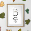 B is for ball dog vocabulary, dog alphabet funny typography print for dog owner, dog lover, hallway (Size: A5/A4/A3)