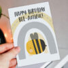 Happy Birthday Bee-autiful bumble bee, bee-themed beautiful birthday card for wife, girlfriend, partner (Size A6/A5/A4/Square 6×6″)