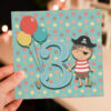 Boy’s, children’s, kid’s, child’s 3rd birthday, age 3 pirate card for son, grandson, nephew (Size A6/A5/A4/Square 6×6″)