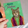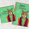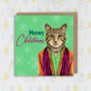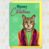 Meowy, Merry Christmas cute cat in clothes, kitten, feline Christmas, Holidays, Xmas, festive card (Animalyser) (Size A6/A5/A4/Square 6×6″)