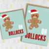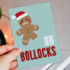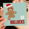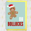 Oh bollocks funny rude, swear word gingerbread man Christmas, Holidays, Xmas, festive card for friend, mate (Size A6/A5/A4/Square 6×6″)