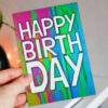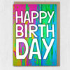 Rainbow paint splat, paint drips colourful, LGBTQ+, pride, gay, lesbian birthday card: Happy Birth Day (Size A6/A5/A4)