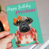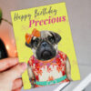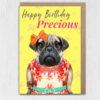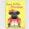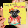 Happy Birthday Precious pug dog animal in clothes card for female, girlfriend, wife, partner, girl, gal (Animalyser) Size A6/A5/A4/Square