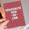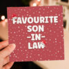 Funny favourite in laws Christmas card for mother, father, son, daughter, brother or sister in law (Size A6/A5/A4/Square 6×6″)