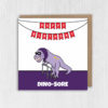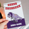 Dino-sore funny dinosaur female birthday card for grandma, mum, mom, old age, OAP, pensioner (Size A6/A5/A4/Square 6×6″)