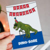 Dino-sore funny dinosaur male birthday card for grandad, dad, old age, OAP, pensioner (Size A6/A5/A4/Square 6×6″)