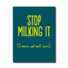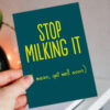 Stop milking it (I mean, get well soon) funny, rude get well soon, operation recovery, hospital card for friend, mate, bestie, coworker
