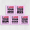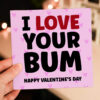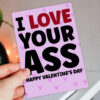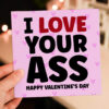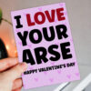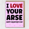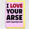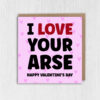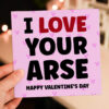 I love your arse, ass, bum, cock, tits funny, rude Valentine’s Day card for boyfriend, husband, girlfriend, wife, partner (Size A6/A5/A4/Square 6×6″)
