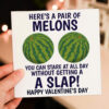 Pair of melons to stare at all day without getting a slap funny, rude, breasts, boobs, melons Valentine’s Day card Size A6/A5/A4/Square 6×6″