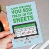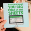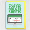 Happy birthday you big freak in the sheets funny spreadsheets, office humour card for colleague, geek, nerd (Size A6/A5/A4/Square 6×6″)