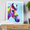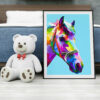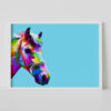 Horse geometric illustrated rainbow print, wall art, wall decor for horse, equestrian and animal lovers (Size: A5/A4/A3)