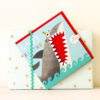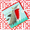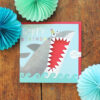 A sensational shark with a fab laser cut mouth! Set on a soft turquoise background.