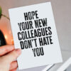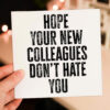 Hope your new colleagues don’t hate you funny, rude new job, leaving, goodbye, good luck card for coworker (Size A6/A5/A4/Square 6×6″)