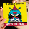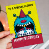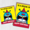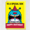 Monster cake birthday card personalised with relation age for children, child, boy, girl, relation, ages 1-6 (Size A6/A5/A4/Square 6×6″)