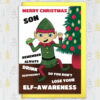 Don’t lose your elf-awareness personalised funny elf Christmas card for son, daughter, grandchildren, any relation (Size A6/A5/A4)