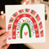 Merry Christmas rainbow festive, xmas, Holidays card for friend, mate, auntie, grandma, grandmother, female (Size A6/A5/A4/Square 6×6″)