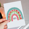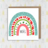 Christmas Noel rainbow festive, xmas, Holidays card for friend, mate, auntie, grandma, grandmother, female (Size A6/A5/A4/Square 6×6″)