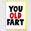 Funny, rude, offensive old age, old person, old man, old lady, pensioner birthday card: You old fart chunky text (Size A6/A5/A4/Square 6×6″)
