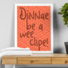 Dinnae be a wee clipe Scottish, Scotland, Glasgow, Edinburgh dialect, phrases, sayings print, wall art, wall decor (Size: A5/A4/A3)