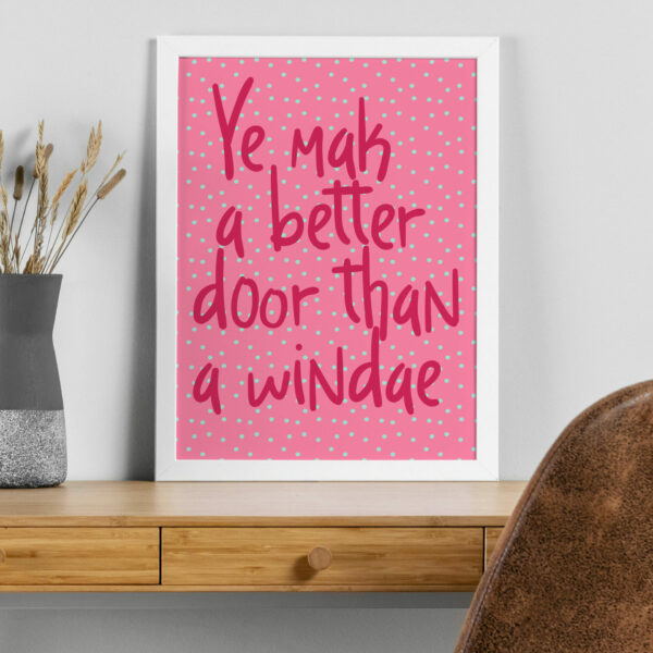 Better door than a windae Scottish, Scotland, Glasgow, Edinburgh dialect, phrases, sayings print, wall art, wall decor (Size: A5/A4/A3)