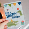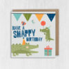 Crocodile, alligator children, child, kid, boy, girl birthday card: Have a snappy birthday (Size A6/A5/A4/Square 6×6″)