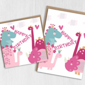 Pink dinosaurs birthday card for children