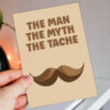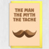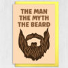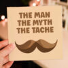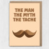 The man, the myth, the beard, tache, moustache funny birthday, anniversary, Valentine’s Day, Father’s Day card for male, dad, father, boyfriend, husband (Size A6/A5/A4/Square 6×6″)