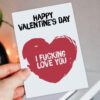 Happy Valentine’s Day, I fucking love you, swear word, swearing, funny Valentines card for wife, husband (Size: A6/A5/A4/Square 6×6″)