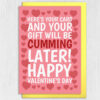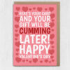 Here’s your card and your gift will be cumming later Valentine’s Day card for wife, girlfriend, husband, boyfriend (Size A6/A5/A4)